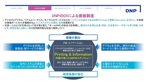 一連の事業は、プリンティング(Printing)テクノロジーにインフォメーション(Information)テクノロジーを掛け合わせて新しい価値を創出し、社会課題解決につなげていこうとする「P&Iイノベーション」という事業ビジョンに基づいている。これはまさに世間一般で言うDXそのものだ。