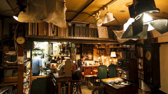 「ジャズ喫茶 映画館」も見逃せません。店内の至る所にヴィンテージの映画機材が置かれ、首都圏でも特徴的なジャズ喫茶の一つである映画館。オーナーの吉田さんはかつてドキュメンタリー映画の製作に携わっており、当初、彼と彼の仲間たちが映画を撮影する場所にと、ここを借りたことに端を発しました。