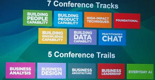 今年はトランプ政策の影響からか、米国以外(特にカナダ)からの参加者が例年よりも少なかったのですが、それでも数百人が参加している規模の大きなカンファレンスです。ビジネスアナリシスに関連するさまざまなトピックのセッションがあり、複数のセッションを同時に行っています。参加者は好きなセッションに参加できます。