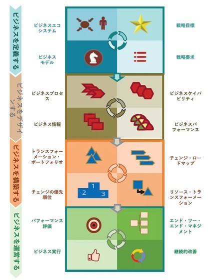 ここでビジネスのオペレーティングモデルとしての将来像が描かれ、次のビジネス構築フェーズで、実際のプロジェクトやロードマップが策定され、実行されていきます。紙面の都合で詳細を説明できませんが、日本語訳版(ロジャー・バールトン著、塩田宏治・庄司敏浩・濱井和夫訳「ビジネスアーキテクチャ」Technics Publications)が発売されていますので、関心ある方は、ぜひ手に取ってみてください。