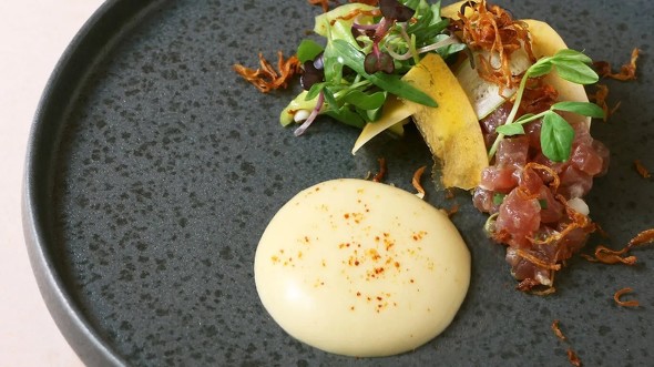 レストランは、パリの名店「L’Arceste」で、オープン後わずか5カ月でミシュランの星を獲得した佐藤健志がエグゼクティブシェフを務めます。世界各地の料理のエッセンスを取り入れた、大胆かつ繊細なフレンチフュージョン料理を提供。バーでは、ソムリエ監修のワインとカクテルが味わえます。
