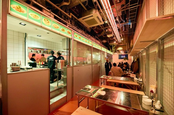 店内は広々としていて、テーブル席はもちろん、一人でも気兼ねなく食事できるカウンター席を設置。飲食のプロデュースは、「渋谷半地下酒場」や表参道「BLUE THE THREE(ブルー ザ スリー)」を運営している今添笑店が手がけています。